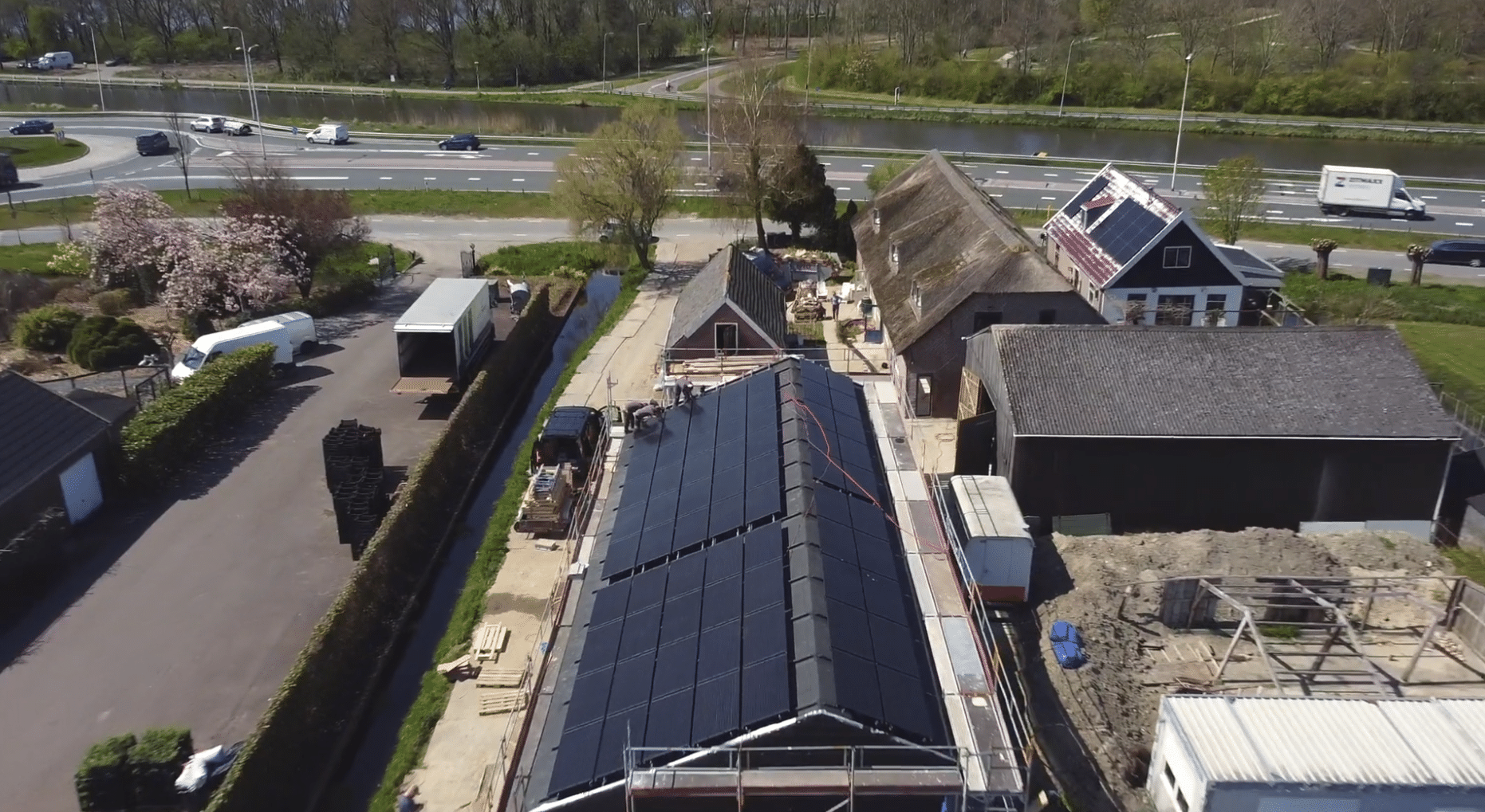 Hoe verduurzaam je een 150 jaar oude boerderij en maak je deze gasloos en zelfvoorzienend? Deze video toont je stap voor stap hoe dit is gedaan in Aarlanderveen met warmtepomp en Triple Solar PVT-warmtepomppanelen.Eerst is de schil aangepakt en geïsoleerd volgens de huidige normen (dak, vloeren en wanden). Daarnaast is er overal vloerverwarming aangelegd. De elektriciteit en warmte voor het hele complex wordt opgewekt door 70 Triple Solar PVT-panelen die op een nieuw gebouwde kapschuur zijn geïnstalleerd als bron voor de water/water warmtepomp.