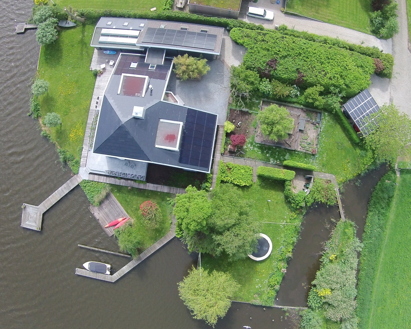Deze woning aan het water is uitgerust met een 16 kW water/water warmtepomp. De bron (Triple Solar PVT-panelen) van de warmtepomp is als indak-installatie geplaatst. Om de esthetische waarde te verhogen is er gekozen voor een afwerking met PV panelen van Exasun. Hierna is de woning volledig losgekoppeld van het gas.