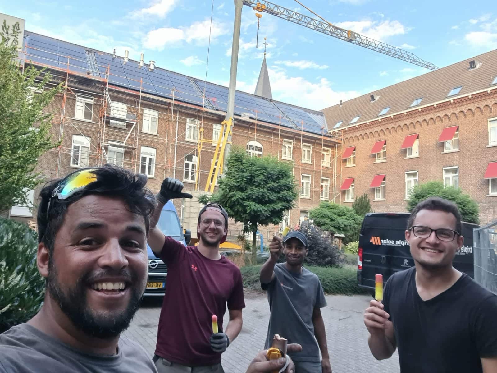 Op het dak liggen nu 108 Triple Solar PVT-panelen van 450 Wp, geïnstalleerd door Triple Solar. De zonne-energie die op het dak valt wordt niet alleen omgezet in elektriciteit, maar wordt ook gebruikt om het pand mee te verwarmen en te koelen. Het dak krijgt dus een dubbele functie en zo er kan zowel op de elektriciteits- als op de gasrekening bespaard worden.