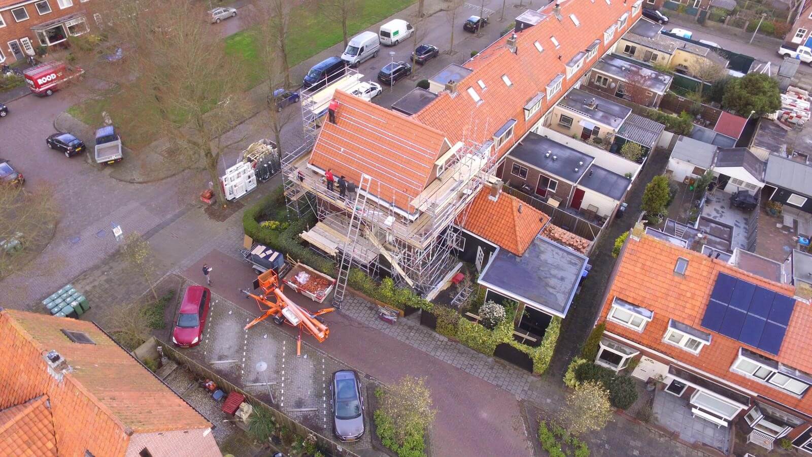 De Triple Solar BV PVT zonnepanelen leveren zowel elektriciteit en dienen als energiebron voor de warmtepomp. De extra afdekplaten over het leidingwerk zorgen voor een mooie afwerking. Op de foto’s kunt u vanuit de lucht zien hoe de PVT-panelen op het dak worden gemonteerd. Het eind resultaat mag er zijn. De woning is compleet gasloos en nul op de meter.