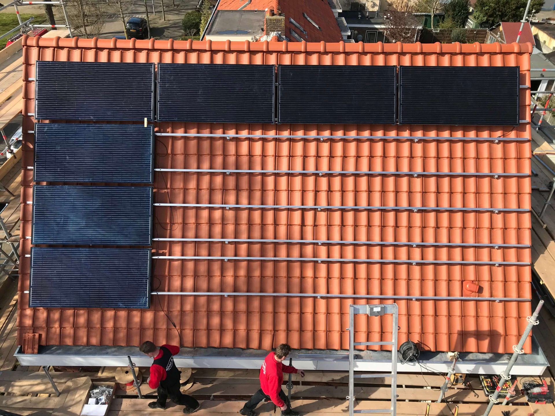 Technisch Installatiebedrijf Rood B.V. uit Anna Paulowna plaatste deze week 16 PVT-warmtepomppanelen 360 Wp bij een renovatie van een woning in Den Helder. Deze zijn gemonteerd op de zuid zijde van het schuine dak.